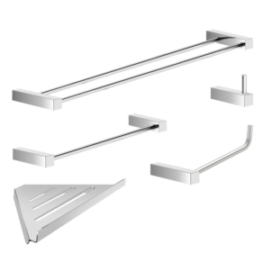 O kit de acessórios para banheiro da linha Troia possui um design atemporal, são peças que se destacam com imponência e modernidade.