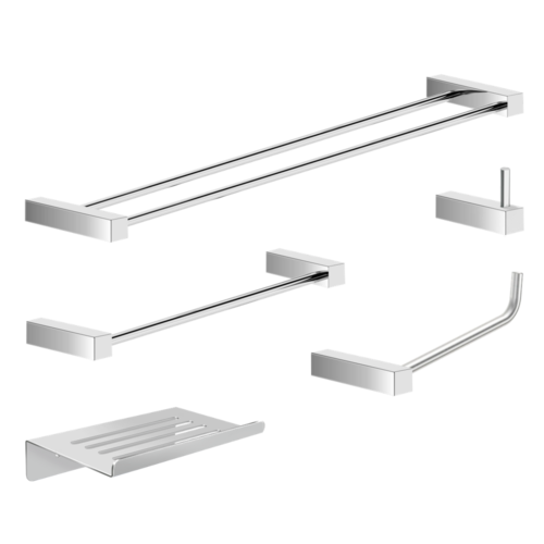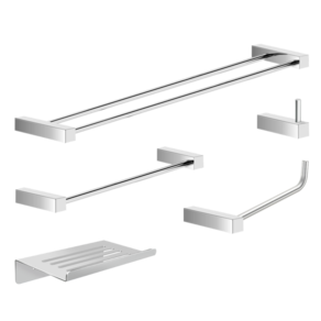 O kit de acessórios para banheiro da linha Troia possui um design atemporal, são peças que se destacam com imponência e modernidade.