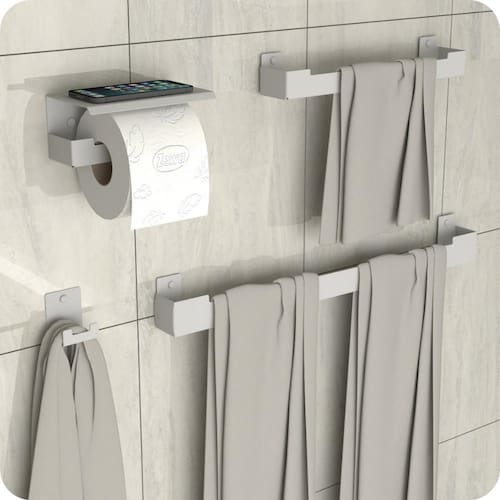 Com um design minimalista, o preferido pelos arquitetos nos últimos tempos, o Kit Acessórios Para Banheiro é fabricado utilizando aço inox com acabamento em Pintura Eletrostática Epóxi proporcionando maior durabilidade, resistência e garantindo que não ocorrerá oxidação nem ferrugem.