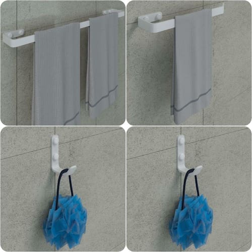 As peças do kit possuem um design clean e sofisticado, suas barras são de alumínio maciço, com acabamento em pintura eletrostática epóxi branca garantindo maior durabilidade e resistência, não havendo problemas com ferrugem.
