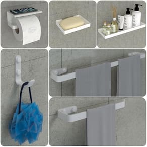 Ter um banheiro organizado traz leveza e praticidade para sua rotina. Para que o banheiro fique em ordem, é necessário o uso de alguns produtos. O kit de Acessórios para Banheiro MAX é super indicado pois contém 6 peças para a harmonização do seu ambiente.