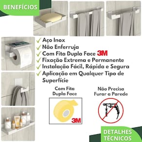 O Kit Acessórios Para Banheiro Adesivo Ventosa foi projetado para quem não quer furar a parede e busca por qualidade na fixação e boa aderência em ambientes molhados.