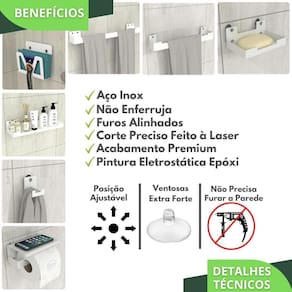 O Kit Acessórios Com Ventosa possibilita a mudança de local quantas vezes você desejar, ao contrário dos adesivos que só podem ser colados uma vez e com o passar do tempo descolam da superfície, as ventosas são projetadas para ter uma boa aderência em ambientes molhados.