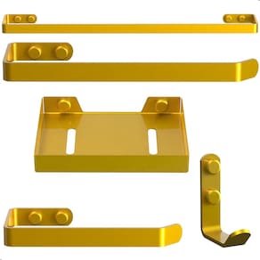 Material Reforçado – Aço carbono de alta resistência, ideal para uso diário Não Enferruja Fácil – Acabamento premium que protege contra umidade e corrosão Design Clean e Sofisticado – Cor Dourada para um visual moderno e elegante Instalação Prática – Furos alinhados, parafusos sextavados e tampas de acabamento para um acabamento impecável Kit com 5 Peças – Tudo o que você precisa para um banheiro funcional e sofisticado