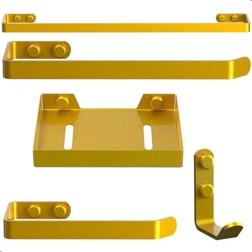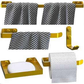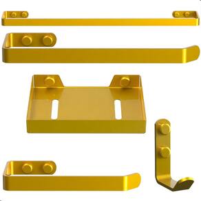 Transforme seu banheiro em um ambiente organizado, moderno e sofisticado com o Kit Acessórios Para Banheiro Dourado 5 Peças Plus. Produzido em aço carbono de alta qualidade, com pintura eletrostática epóxi Dourada, este kit une resistência, durabilidade e elegância para o seu dia a dia.