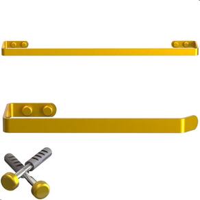 Material Reforçado - Aço carbono de alta resistência, ideal para uso diário Não Enferruja Fácil - Acabamento premium que protege contra umidade e corrosão Design Clean e Sofisticado - Cor Dourada para um visual moderno e elegante Instalação Prática - Furos alinhados, parafusos sextavados e tampas de acabamento para um acabamento impecável Funcional - porta papel higiênico com prateleira superior para apoiar celular, aromatizador ou pequenos itens decorativos