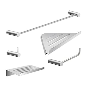 ITENS ENVIADOS: 1 cabide, 1 porta papel higiênico, 1 toalheiro banho 50cm, 1 saboneteira, 1 prateleira suporte canto 30cm, kit de parafusos e manual instrução instalação.
