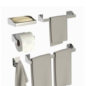 Kit Acessórios Para Banheiro Inox 5 Peças Master Slim DF O Kit Acessórios Para Banheiro Dupla Face foi projetado para quem não quer furar a parede e busca por qualidade na fixação e boa aderência em ambientes molhados.Prezando pela sofisticação e elegância, cada traço do produto foi cuidadosamente desenhado para deixar seu banheiro com um visual clean e sofisticado. Com um design minimalista, o preferido pelos arquitetos nos últimos tempos, o Kit Acessórios Para Banheiro é fabricado utilizando aço inox com acabamento polido em alto brilho proporcionando maior durabilidade, resistência e garantindo que não ocorrerá oxidação nem ferrugem. A fixação é feita com fita dupla face da marca 3M produzida sob medida personalizada para o produto, garantindo mais firmeza e estabilidade. Após remover a fita e colar o produto na parede, aguarde 20minutos e em seguida o produto já pode ser utilizado. Seu processo de acabamento é feito em polimento de alta temperatura, o que garante um alto padrão de brilho, dando um toque especial na decoração do seu banheiro. BENEFÍCIOSFixação: Fita Dupla FaceAcabamento Premium: Corte Realizado à LaserMaterial de Aço InoxResistente a ÁguaNão Enferruja e não sofre oxidação ESPECIFICAÇÕES TÉCNICASMaterial: Aço InoxAcabamento: Polido em Alta TemperaturaCor: Alto BrilhoQuantidade de Peças do Kit: 05 MEDIDASPorta Toalha de Banho: 5cm x 44cm x 5,5cmPorta Toalha de Rosto: 5cm x 30cm x 5,5cmPorta Papel Higiênico: 9cm x 15cm x 6cmGancho: 3,5cm x 3cm x 4,5cmSaboneteira: 3,5cm x 12cm x 7,5cm ITENS INCLUSOS1 Porta Toalha de Banho1 Porta Toalha de Rosto1 Porta Papel Higiênico1 Gancho1 Saboneteira Todos os itens são enviados com fita dupla face da marca 3M.