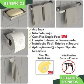 O Kit Acessórios Para Banheiro Dupla Face foi projetado para quem não quer furar a parede e busca por qualidade na fixação e boa aderência em ambientes molhados.