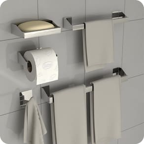 Kit Acessórios Para Banheiro Inox 5 Peças Master Slim DF O Kit Acessórios Para Banheiro Dupla Face foi projetado para quem não quer furar a parede e busca por qualidade na fixação e boa aderência em ambientes molhados. Prezando pela sofisticação e elegância, cada traço do produto foi cuidadosamente desenhado para deixar seu banheiro com um visual clean e sofisticado.