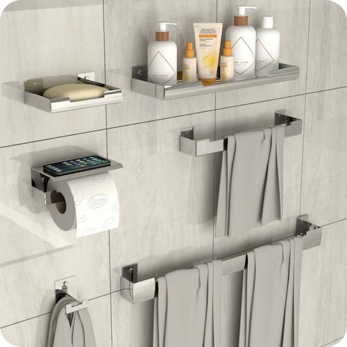 Com um design minimalista, o preferido pelos arquitetos nos últimos tempos, o Kit Acessórios Para Banheiro é fabricado utilizando aço inox com acabamento polido em alto brilho proporcionando maior durabilidade, resistência e garantindo que não ocorrerá oxidação nem ferrugem.