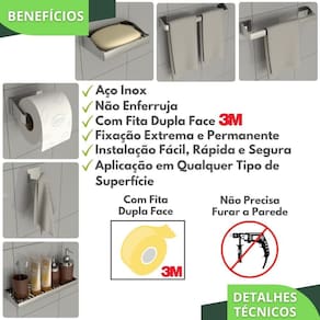 O Kit Acessórios Para Banheiro Dupla Face foi projetado para quem não quer furar a parede e busca por qualidade na fixação e boa aderência em ambientes molhados.