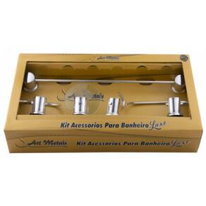Este é o kit ideal para equipar seu banheiro e deixá-lo muito mais eleganteProdutos confeccionados em aço inox de alta qualidade e durabilidade, com 5 anos de garantia. O kit vai completo com todos os acessórios, incluindo parafusos e buchas para instalação das peças. Itens Inclusos:1 Porta Toalha Rosto1 Porta Toalha Banho1 Cabide1 Papeleiro 1 Saboneteira12 Buchas 12 Parafusos. Medidas:Porta toalhas rosto: comprimento 23cm, largura 15cmPorta Toalha Banho: comprimento 60cm, largura 6cmCabide: comprimento 10cm, largura 9cmPapeleira: comprimento 16cm, largura 9cmSaboneteira: comprimento 15cm, largura 13cm.