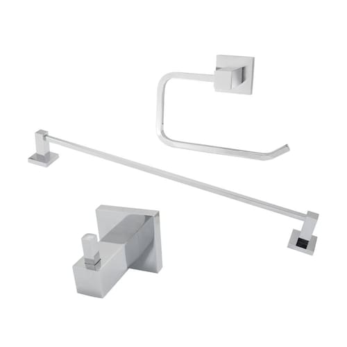 Kit acessórios para banheiro com 3 peças metal cromado