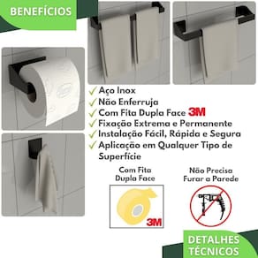 O Kit Acessórios Para Banheiro Dupla Face foi projetado para quem não quer furar a parede e busca por qualidade na fixação e boa aderência em ambientes molhados.