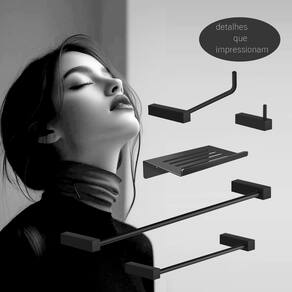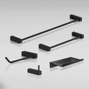 ITENS ENVIADOS: 1 cabide, 1 porta papel higiênico, 1 toalheiro rosto 30cm, 1 toalheiro banho 50cm, 1 saboneteira, kit de parafusos e manual instrução instalação.