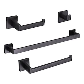 Cor: preto Material: aço inoxidável 304 Espessura das peças: 1 cm. Tipo de fixação: dupla com parafusos Itens inclusos: papeleira, cabide, porta toalha de rosto e porta toalha de banho. Acompanha: parafusos e buchas para instalação Marca: Revomax Ean: 7906936908157