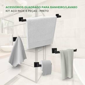 Itens inclusos: - 1x Porta toalha de banho - 1x Porta papel higiênico - 1x Porta toalha de rosto - 1x Gancho para roupa - Kit Parafusos e buchas para instalação