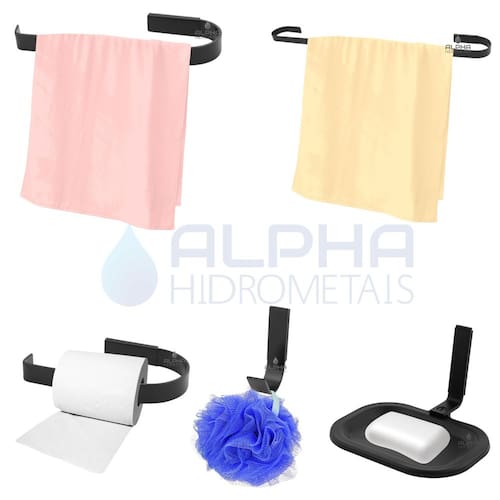-marca: alpha hidrometais -instalação: parede -utilização: banheiro -modelo: kit de acessórios -material: alumínio alta resistência a riscos e a corrosões -acompanha acessórios para instalação parafusos e buchas -medidas do produto nas imagens