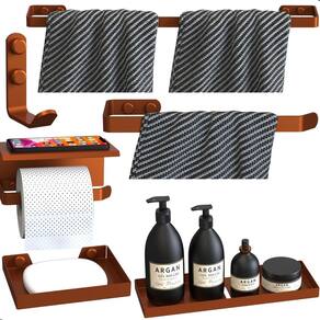 Kit Acessórios Para Banheiro Rose Gold 6 Peças Max Transforme seu banheiro em um ambiente organizado, moderno e sofisticado com o Kit Acessórios Para Banheiro Rose Gold 6 Peças Max. Produzido em aço carbono de alta qualidade, com pintura eletrostática epóxi Rose Gold, este kit une resistência, durabilidade e elegância para o seu dia a dia.