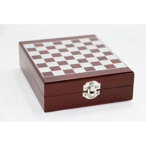 Kit de Acessórios para Vinho com 5 Peças em Inox e Caixa com Jogo de Xadrez medindo 17,50 cm x 14,50 cm x 5,00 cm - Unyhome