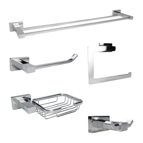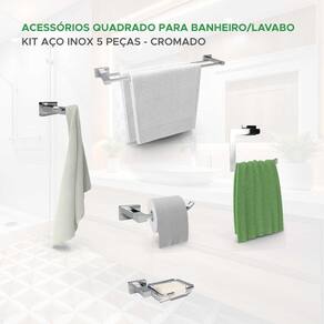 Itens inclusos: - 1x Porta toalha de banho duplo - 1x Cabide - 1x Porta papel higiênico - 1x Gancho multiúso - 1x Saboneteira - Kit Parafusos e buchas para instalação
