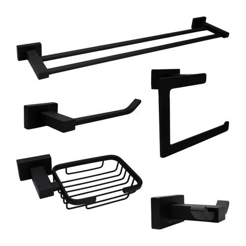 Itens inclusos: - 1x Porta toalha de banho duplo - 1x Cabide - 1x Porta papel higiênico - 1x Gancho multiúso - 1x Saboneteira - Kit Parafusos e buchas para instalação