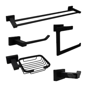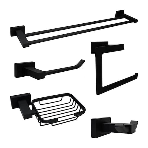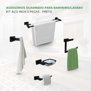 Kit Acessórios Quadrado Luxo Banheiro Inox 5 Peças Preto