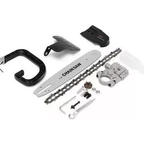 Transforme a sua esmerilhadeira em uma motosserra elétrica com esse Kit Adaptor. Com ele você tem tudo o que precisa para transformar sua esmerilhadeira e poder ter uma motosserra elétrica em casa gastando bem menos. O kit não acompanha a emerilhadeira, apenas os adaptadores.