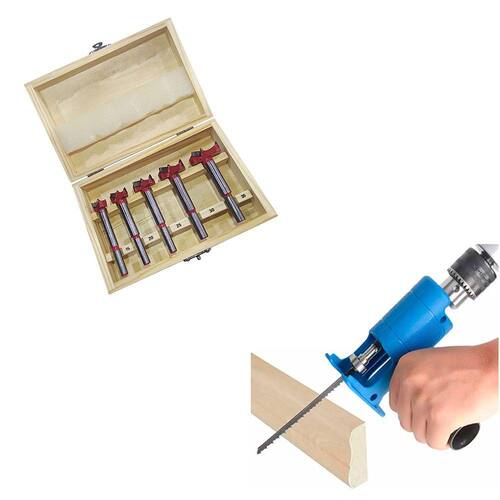 Adaptador para Transformar Furadeira em Serra Tico-Tico - CHARBS + Kit 5 Brocas Forstner Fresa 15 a 35mm para Dobradiça Charbs