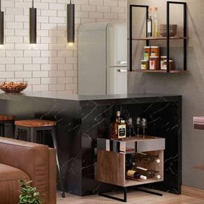 Transforme o seu espaço com o Conjunto Adega Espelhada e Prateleira Estilo Industrial Aurora!