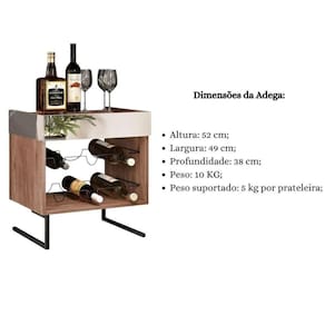 Adega Espelhada Deslumbrante: A adega é adornada com lindos espelhos, proporcionando um visual sofisticado e uma forma elegante de armazenar até seis garrafas de vinho. Com dois suportes aramados para garrafas, é tanto prática quanto estilosa.