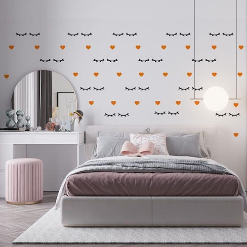 Kit Adesivo Decorativo de Parede Infantil Cílios e Coração