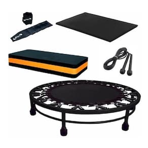 Kit aeróbico mini jump+colchonete +corda + caneleira5 + step Detalhes do produto Mini jump profissional 32 molas com aro de reforço - cheers O jump profissional - cama elástica trampolim é ideal para o uso em academias, condomínios e residências, além de queimar calorias de forma eficiente. Confeccionado em tubo redondo de aço com aro de reforço, possui pintura em epóxi e tem os pé fixos . São 32 molas para você manter o corpo em forma de uma maneira divertida e saudável. As molas são fixadas á tela por 16 suportes de aço. Pés em pvc antiderrapantes removíveis que se encaixam. O colchonete profissional 90 x 45 x 2 cm é ideal para ter mais conforto na hora de fazer seus exercícios, praticar yoga, pilates ou qualquer exercício funcional. Ele é super prático, fácil de guardar, e é fabricado em espuma de 20 mm com densidade d16, sendo confortável na medida certa. No exterior, é revestido em napa lavável e impermeável, o que facilita quando houver necessidade de higienização e no excesso de suor na prática de exercícios. Você vai se sentir mais confortável para fazer abdominais e outras atividades físicas, além de seu uso ser indispensável para proteger a coluna e evitar lesões. Ações e benefícios: - confortável com enchimento em espuma 20mm de densidade d16 - leve e prático para transporte e armazenamento - tecido lavável e impermeável garante durabilidade do produto - ideal para quaisquer exercícios, prática de yoga, pilates e outras atividades Indicações: - prevenir a coluna e o corpo de lesões em exercícios no solo - ideal para ter mais conforto na prática de quaisquer atividades esportivas Dados técnicos: Tamanho: 90 x 45 x 2 cm Marca: fitness store Material: revestimento em napa com enchimento em espuma 30mm de densidade d23 : 3 meses contra defeito de fabricação Cor: preto Indicações Ideal para o uso em academias, condomínios e residências. Indicado para . Caneleira de peso 5 kg é ideal para a prática de exercícios de ginástica, academia, musculação, etc com peso. São caneleiras profissionais com carga, feitas em capota reforçado, dando mais conforto ao tornozelo. Não absorve suor, é fácil de limpar e higienizar . Possui uma costura dupla de reforço, evitando o vazamento do enchimento. Seu sistema de fechamento é feito em tiras aderentes, garantindo facilidade e segurança na hora de prender a caneleira na perna. Características: Cor: preto Lavável: sim Sistema de fechamento: tiras aderentes Outros: confortável ao tornozelo, não absorve suor, fácil de higienizar, possui costura reforçada evitando o vazamento do enchimento. Membros ou músculos trabalhados: coxas, abdômens, glúteos, panturrilhas e braços. Material: emborrachado Quantidade: 01 - par caneleira de 5kg Kit composto por: 1- mini jump 1- colchonete 90 x 45 x 2 cm 1- corda de pvc 1- par de caneleira de 5 kg 1- step de eva 60cm x 30cm x 10cm