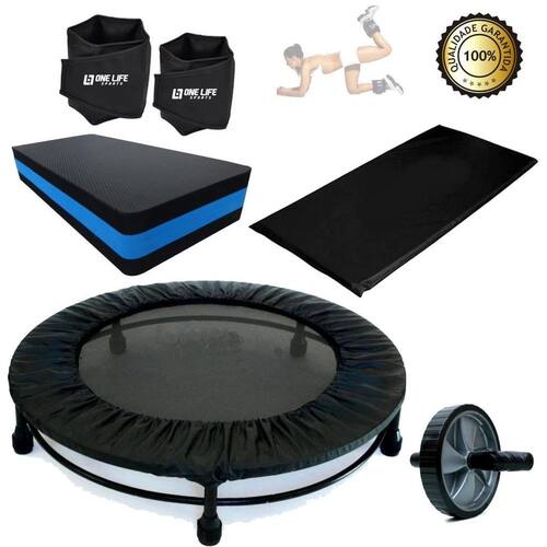 Kit aeróbico mini jump+colchonete+roda+caneleira3+step+capa Detalhes do produto Mini jump 32 molas com aro de reforço - cheers O jump - cama elástica trampolim é ideal para o uso em academias, condomínios e residências, além de queimar calorias de forma eficiente. Confeccionado em tubo redondo de aço com aro de reforço, possui pintura em epóxi e tem os pé fixos . São 32 molas para você manter o corpo em forma de uma maneira divertida e saudável. As molas são fixadas á tela por 16 suportes de aço. Pés em pvc antiderrapantes removíveis que se encaixam. O colchonete 90 x 45 x 2 cm é ideal para ter mais conforto na hora de fazer seus exercícios, praticar yoga, pilates ou qualquer exercício funcional. Ele é super prático, fácil de guardar, e é fabricado em espuma de 20 mm com densidade d16, sendo confortável na medida certa. No exterior, é revestido em napa lavável e impermeável, o que facilita quando houver necessidade de higienização e no excesso de suor na prática de exercícios. Você vai se sentir mais confortável para fazer abdominais e outras atividades físicas, além de seu uso ser indispensável para proteger a coluna e evitar lesões. Ações e benefícios: - confortável com enchimento em espuma 20mm de densidade d16 - leve e prático para transporte e armazenamento - tecido lavável e impermeável garante durabilidade do produto - ideal para quaisquer exercícios, prática de yoga, pilates e outras atividades Indicações: - prevenir a coluna e o corpo de lesões em exercícios no solo - ideal para ter mais conforto na prática de quaisquer atividades esportivas Dados técnicos: Tamanho: 90 x 45 x 2 cm Marca: fitness store Material: revestimento em napa com enchimento em espuma 20mm de densidade d16 : 3 meses contra defeito de fabricação Cor: preto Indicações Ideal para o uso em academias, condomínios e residências. Indicado para . caneleira de peso 2 kg é ideal para a prática de exercícios de ginástica, academia, musculação, etc com peso. São caneleiras profissionais com carga, feitas em capota reforçado, dando mais conforto ao tornozelo. Não absorve suor, é fácil de limpar e higienizar . Possui uma costura dupla de reforço, evitando o vazamento do enchimento. Seu sistema de fechamento é feito em tiras aderentes, garantindo facilidade e segurança na hora de prender a caneleira na perna. Características: Cor: preto Lavável: sim Sistema de fechamento: tiras aderentes Outros: confortável ao tornozelo, não absorve suor, fácil de higienizar, possui costura reforçada evitando o vazamento do enchimento. Membros ou músculos trabalhados: coxas, abdômens, glúteos, panturrilhas e braços. Material: emborrachado Quantidade: 01 - par caneleira de 2kg Kit composto por: 1- mini jump 1- colchonete 90x45x2 cm 1- roda abdominal 1- par de caneleira de 3 kg 1- step de eva 60cm x 30cm x 10cm 1- capa