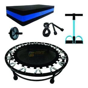 Kit aeróbico mini jump + corda + step + roda + extensor Detalhes do produto Mini jump profissional 32 molas com aro de reforço - cheers O jump profissional - cama elástica trampolim é ideal para o uso em academias, condomínios e residências, além de queimar calorias de forma eficiente. Confeccionado em tubo redondo de aço com aro de reforço, possui pintura em epóxi e tem os pé fixos . São 32 molas para você manter o corpo em forma de uma maneira divertida e saudável. As molas são fixadas á tela por 16 suportes de aço. Pés em pvc antiderrapantes removíveis que se encaixam. O colchonete profissional 90 x 45 x 2 cm é ideal para ter mais conforto na hora de fazer seus exercícios, praticar yoga, pilates ou qualquer exercício funcional. Ele é super prático, fácil de guardar, e é fabricado em espuma de 20 mm com densidade d16, sendo confortável na medida certa. No exterior, é revestido em napa lavável e impermeável, o que facilita quando houver necessidade de higienização e no excesso de suor na prática de exercícios. Você vai se sentir mais confortável para fazer abdominais e outras atividades físicas, além de seu uso ser indispensável para proteger a coluna e evitar lesões. Ações e benefícios: - confortável com enchimento em espuma 20mm de densidade d16 - leve e prático para transporte e armazenamento - tecido lavável e impermeável garante durabilidade do produto - ideal para quaisquer exercícios, prática de yoga, pilates e outras atividades Indicações: - prevenir a coluna e o corpo de lesões em exercícios no solo - ideal para ter mais conforto na prática de quaisquer atividades esportivas Dados técnicos: Tamanho: 90 x 45 x 2 cm Marca: fitness store Material: revestimento em napa com enchimento em espuma 30mm de densidade d23 : 3 meses contra defeito de fabricação Cor: preto Indicações Ideal para o uso em academias, condomínios e residências. Indicado para . Kit composto por: 1- mini jump 1- corda de pvc 1- step de eva 60cm x 30cm x 10cm 1- roda abdominal 1- extensor elástico com apoio