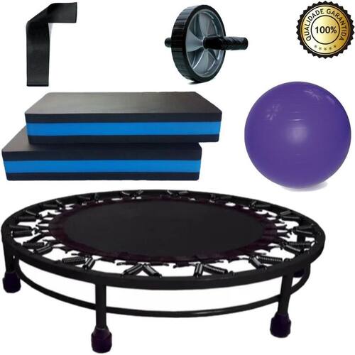 Kit composto por: 1- mini jump 2- step de eva 60cm x 30cm x 10cm 1- bola de pilates 65 cm 1- mini band forte 1- roda abdominal
