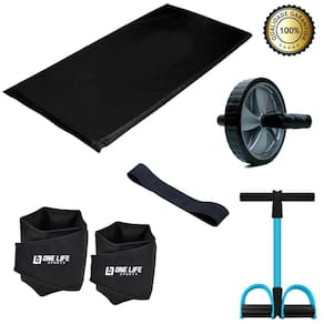 Kit funcional rodinha+ extensor +caneleira+ colchonete +band Descrição: A caneleira de peso 5 kg academia e ginástica é ideal para a prática de exercícios de ginástica, academia, musculação, etc com peso. São caneleiras profissionais com carga, feitas em capota reforçado, dando mais conforto ao tornozelo. Não absorve suor, é fácil de limpar e higienizar possui uma costura dupla de reforço, evitando o vazamento do enchimento. Seu sistema de fechamento é feito em tiras aderentes, garantindo facilidade e segurança na hora de prender a caneleira na perna. Características: Cor: preto Lavável: sim Sistema de fechamento: tiras aderentes Outros: confortável ao tornozelo, não absorve suor, fácil de higienizar, possui costura reforçada evitando o vazamento do enchimento. Membros ou músculos trabalhados: coxas, abdômens, glúteos, panturrilhas e braços. Material: nylon reforçado Quantidade: 01 - par caneleira de 5 kg O colchonete 90 x 45 x 2 cm é ideal para ter mais conforto na hora de fazer seus exercícios, praticar yoga, pilates ou qualquer exercício funcional. Ele é super prático, fácil de guardar, e é fabricado em espuma de 20 mm com densidade d16, sendo confortável na medida certa. No exterior, é revestido em napa lavável e impermeável, o que facilita quando houver necessidade de higienização e no excesso de suor na prática de exercícios. Você vai se sentir mais confortável para fazer abdominais e outras atividades físicas, além de seu uso ser indispensável para proteger a coluna e evitar lesões. Ações e benefícios: - confortável com enchimento em espuma 20mm de densidade d16 - leve e prático para transporte e armazenamento - tecido lavável e impermeável garante durabilidade do produto - ideal para quaisquer exercícios, prática de yoga, pilates e outras atividades Indicações: - prevenir a coluna e o corpo de lesões em exercícios no solo - ideal para ter mais conforto na prática de quaisquer atividades esportiva Detalhes do produto Cores de acordo com O mini band cheers é excelentes para o fortalecimento muscular dos glúteos, pernas, peito e braços. São leves, práticas, portáteis, simples de guardar e transportar. Ideal para quem quer fazer exercícios em qualquer lugar. Ações e benefícios - as faixas elásticas são leves, práticas, portáteis, simples de guardar e transportar - promovem o fortalecimento muscular dos glúteos, pernas, peito e braços Dicas de treino - agachamento Mantenha as pernas estabilizadas, posicione os pés um pouco mais abertos que o quadril e agache até o ângulo de 90 graus. - agachamento isométrico abdutores Mantenha-se agachado em 90 graus e faça o movimento de abdução do joelho, sem retirar o calcanhar do chão. - elevação de pelve Com a mini band na coxa, mantenha as escápulas no chão e eleve a pelve até o ângulo de 180 graus, contraindo os glúteos. Dados técnicos Kit composto por: -colchonete -caneleira 5 kg par -mini band extra forte -roda abdominal -extensor com apoio