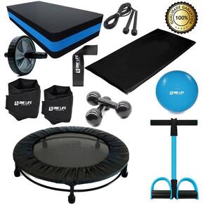Kit aeróbico treino em casa para funcional Detalhes do produto Mini jump profissional 32 molas com aro de reforço - cheers O jump profissional - cama elástica trampolim é ideal para o uso em academias, condomínios e residências, além de queimar calorias de forma eficiente. Confeccionado em tubo redondo de aço com aro de reforço, possui pintura em epóxi e tem os pé fixos . São 32 molas para você manter o corpo em forma de uma maneira divertida e saudável. As molas são fixadas á tela por 16 suportes de aço. Pés em pvc antiderrapantes removíveis que se encaixam. O colchonete profissional 90 x 45 x 3 cm é ideal para ter mais conforto na hora de fazer seus exercícios, praticar yoga, pilates ou qualquer exercício funcional. Ele é super prático, fácil de guardar, e é fabricado em espuma de 20 mm com densidade d16, sendo confortável na medida certa. No exterior, é revestido em napa lavável e impermeável, o que facilita quando houver necessidade de higienização e no excesso de suor na prática de exercícios. Você vai se sentir mais confortável para fazer abdominais e outras atividades físicas, além de seu uso ser indispensável para proteger a coluna e evitar lesões. Ações e benefícios: - confortável com enchimento em espuma 20mm de densidade d16 - leve e prático para transporte e armazenamento - tecido lavável e impermeável garante durabilidade do produto - ideal para quaisquer exercícios, prática de yoga, pilates e outras atividades Indicações: - prevenir a coluna e o corpo de lesões em exercícios no solo - ideal para ter mais conforto na prática de quaisquer atividades esportivas Dados técnicos: Tamanho: 90 x 45 x 2 cm Marca: fitness store Material: revestimento em napa com enchimento em espuma 30mm de densidade d23 : 3 meses contra defeito de fabricação Cor: preto Indicações Ideal para o uso em academias, condomínios e residências. Indicado para . Caneleira de peso 5 kg é ideal para a prática de exercícios de ginástica, academia, musculação, etc com peso. São caneleiras profissionais com carga, feitas em capota reforçado, dando mais conforto ao tornozelo. Não absorve suor, é fácil de limpar e higienizar . Possui uma costura dupla de reforço, evitando o vazamento do enchimento. Seu sistema de fechamento é feito em tiras aderentes, garantindo facilidade e segurança na hora de prender a caneleira na perna. Características: Cor: preto Lavável: sim Sistema de fechamento: tiras aderentes Outros: confortável ao tornozelo, não absorve suor, fácil de higienizar, possui costura reforçada evitando o vazamento do enchimento. Membros ou músculos trabalhados: coxas, abdômens, glúteos, panturrilhas e braços. Material: emborrachado Quantidade: 01 - par caneleira de 5kg Kit composto por: 1- mini jump 1- colchonete 90x45x2 cm 1- corda de pvc 1- par de caneleira de 5 kg 1- step de eva 60cm x 30cm x 10cm 1 - roda abdominal 1 - mini band forte 1 - extensor elástico com apoio para pés 1 - par de halter emborrachado 3 kg 1 - bola suiça 55 cm 1- capa para jump