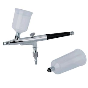 Aerógrafo Profissional - Dupla Ação - 2 Canecas Modelo Exclusivo com 2 Canecas de 20 e 40 ml - O que traz muito mais praticidade nos trabalhos. Ideal para Arte em Geral, Artesanatos, Desenhos, Modelismo, Confeitaria, Pintura Corporal, etc Leve e Prático, perfeito para atender sua necessidade.