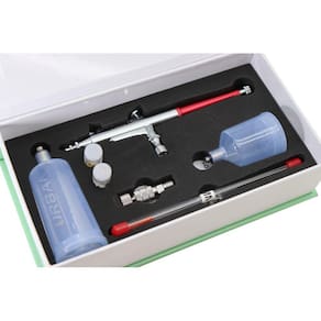 01uni Aerografo de gravidade dupla ação 01uni Engate rápido para mangueira . 01uni Bico e Agulha tamanho 0.2mm 01uni Bico e Agulha tamanho 0.3mm 01uni Bico e Agulha tamanho 0.5mm 01uni Manual de Operação Ean: 7898070289295