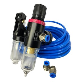 Kit afc2000 lubrifil 1/4 com manometro + conexão reta macho 1/4x8 + mangueira pneumatica Kit afc2000 lubrifil 1/4 com manometro + conexão reta macho 1/4x8mm + mangueira pneumatica Filtro de ar com regulador e lubrificador rosca 1/4 Descrição do produto: o conjunto de preparação de ar tem o objetivo de regular, filtrar e lubrificar o ar comprimido. Modelo: afc2000 rosca g1/4 / fluido: ar / filtragem: 40 / pressão de trabalho: 0,510 bar pressão de ruptura: 12 bar /temp. De trabalho: 560/ drenagem: semi automática Conexao instantanea , modelo:reta macho, rosca:1/4 bsp, tubo:08 mm, pressao de trabalho:8 bar, fluido:ar, material:ferro,plastico,garra em zinco, temperatura de trabalho:0-60c Os tubos em poliuretano são excelentes para uso em sistemas pneumáticos e hidráulicos de baixa pressão. Ideal para aplicação em conexões de engate rápido instantânea em polímero e metálicas. São indicados para aplicações que requerem flexibilidade para facilitar o seu manuseio nas montagens onde se necessitam dobras e torções, tem alta estabilidade térmica. Bitolas externo em milímetros 8 mm; dureza 98 shore; pressão de trabalho 10 bar tc trabalho - 30º a + 60º c. Cor padrão: azul Marca: Não Informado Ean: 7908633119782