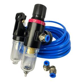 Kit afc2000 lubrifil 1/4 com manometro + conexão reta macho 1/4x6 + mangueira pneumatica Kit afc2000 lubrifil 1/4 com manometro + conexão reta macho 1/4x6 + mangueira pneumatica Filtro de ar com regulador e lubrificador rosca 1/4 Descrição do produto: o conjunto de preparação de ar tem o objetivo de regular, filtrar e lubrificar o ar comprimido. Modelo: afc2000 rosca g1/4 / fluido: ar / filtragem: 40 / pressão de trabalho: 0,510 bar pressão de ruptura: 12 bar /temp. De trabalho: 560/ drenagem: semi automática Conexao instantanea , modelo:reta macho, rosca:1/4 bsp, tubo:06 mm, pressao de trabalho:8 bar, fluido:ar, material:ferro,plastico,garra em zinco, temperatura de trabalho:0-60c Os tubos em poliuretano são excelentes para uso em sistemas pneumáticos e hidráulicos de baixa pressão. Ideal para aplicação em conexões de engate rápido instantânea em polímero e metálicas. São indicados para aplicações que requerem flexibilidade para facilitar o seu manuseio nas montagens onde se necessitam dobras e torções, tem alta estabilidade térmica. Bitolas externo em milímetros 6 mm; dureza 98 shore; pressão de trabalho 10 bar tc trabalho - 30º a + 60º c. Cor padrão: azul Marca: Não Informado
