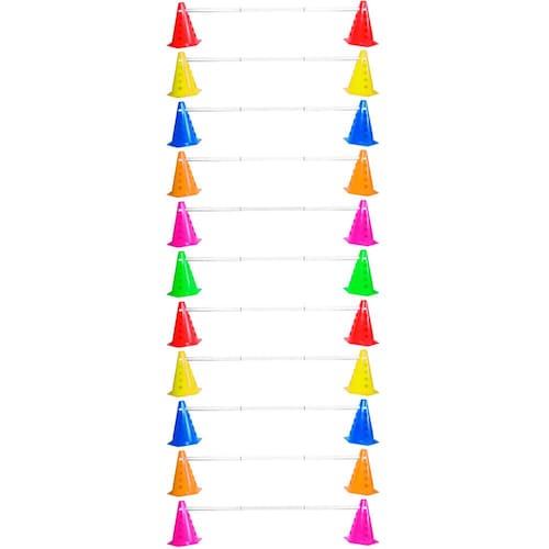 Originalmente utilizados em treinamentos de atletas profissionais, jogadores de futebol. Os acessórios da linha de Agilidade se transformaram em febre do treinamento funcional. Excelente ferramenta para treinos de percurso e de agilidade, o Kit de Cones com furos permite a você criar diversos tipos de percursos e tarefas para melhorar sua performance, velocidade, resistência, coordenação e alto gasto calórico. Extremamente leve e portátil. O kit acompanha furos para poder estar colocando barreiras, ou até mesmo sinalizadores. Com os acessórios personalizáveis você pode estar montando barreiras e sinalizadores de vários tamanhos, cada possui 30cm de comprimento, podendo ser encaixado com outros bastões e aumentar o tamanho da barreira ou sinalizador. Características Dimensões do Cone: 16,3 x 14,5 x 22 cm C x L x A : 30 cm comprimento por barreira, acompanha 3 bastões encaixáveis onde forma 1 barreira de 90cm Itens inclusos: 22 - Cone com furo 11 - Barreira 11 - Kits para encaixe com sinalizador Marca: Natural Fitness Marca: Não Informado