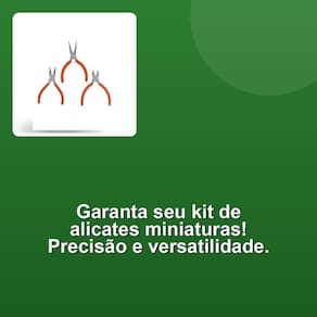 Leve esse kit completo e versátil para você! Permita-se a satisfação de realizar suas tarefas com precisão e confiabilidade. Eleve seu nível de precisão e praticidade com o Kit Alicates Miniatura Western 3 Peças Com Mola. Forjado em aço carbono, este kit é a escolha perfeita para quem busca qualidade e durabilidade. As 3 peças, alicate bico meia-cana, alicate corte diagonal e alicate bico redondo, cobrem uma ampla variedade de necessidades, ideal para trabalhos delicados em bijuterias, artesanato e reparos em eletrônicos.