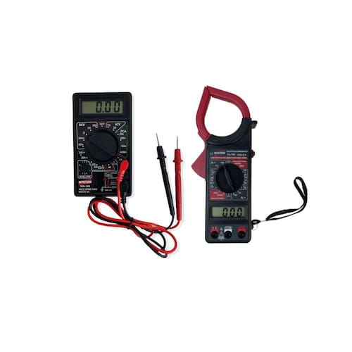 KIT VOLT-AMPERÍMETRO DIGITAL MOD.VA-750 - TIPO ALICATE - CAT II - 600V + MULTÍMETRO DIGITAL MOD.MD-300 3½ DÍGITOS P/ TENSÃO, CORRENTE, RESISTÊNCIA, DIODO, HFE DESCRIÇÃO: Volt-amperímetro digital mod.va-750 - tipo alicate - cat ii - 600v: Alicate volt amperímetro digital mod. VA-750, CAT I - 1000V/CAT II - 600 V, com display de cristal líquido (LCD) de 3 ½ dígitos. Realiza medições de corrente CA através da garra, tensão CA/ CC, resistência e teste de continuidade audível. Conta coma indicação de bateria baixa e indicação de sobre-escala, botão de congelamento de leitura (HOLD) e proteção de sobrecarga para garantir a segurança e a confiabilidade durante as medições. DESTAQUES: Digital, portátil, CAT I-1000V/CAT II - 600 V. Realiza medição de corrente CA, tensão CA/CC, teste de continuidade audível, conta com indicação de sobre-escala e proteção de sobrecarga, para garantir medições seguras em atendimento a NR10. APLICAÇÕES: Utilizado em medições de tensão CA/ VCC, resistência e teste de continuidade audível. As medições de corrente CA são realizadas por meio da garra, ou seja, não é necessário o romper o condutor. Ideal para profissionais da área de elétrica e o atendimento da NR10 em medições preventivas e análise de riscos. ESPECIFICAÇÕES TÉCNICAS: Display: Cristal Líquido (LCD) de 3 ½ dígitos Categoria de segurança: CAT I-1000V/CAT II - 600 V Tensão CC: Faixa e medição: 1 V ~ 1000 V Escala 1000 V Resolução: 1 V Precisão: ± ( 0,8 % da leitura + 1 dígito ) Tensão CA: Faixa e medição: 1 V ~ 750 V Escala: 750 V Resolução: 1 V Precisão: ± ( 1 % da leitura + 4 dígitos) Corrente AC Faixa e medição: 100 mA ~ 1000 A Escala: 200 A ~ 1000 A Resolução: 100 mA , 1 A Precisão: ± ( 2 % da leitura + 5 dígitos ) < 800 A, ± ( 3 % de leitura ± 5 dígitos ) > 800 A Resistência: Faixa e medição: 100 m? ~ 20 K? Escala: 20 ? ~20 k? Resolução: 100 m?, 10 ? Precisão: ± ( 1,0% de leitura ± 3 dígitos ), ± ( 2,0 %de leitura ± 3 dígitos) Data Hold: Congela a leitura no display Diâmetro Máximo do Condutor: 50 mm Temperatura de Operação: 0 ºC a 50 ºC Umidade de Operação: Máx. 80% U.R Alimentação: 1 Bateria de 9 V Continuidade Audível Testador de Isolação Dimensões: 237 mm x 95 mm x 37 mm Peso: 350 g ACESSÓRIOS FORNECIDOS: 1 Volt amperímetro mod. VA-750 1 Par de pontas de prova 1000 V 1 Bateria de 9V 1 Manual de instruções do usuário DESCRIÇÃO: Multímetro digital mod.md-300 3½ dígitos p/ tensão, corrente, resistência, diodo, hfe: ESPECIFICAÇÕES TÉCNICAS: Display: Cristal Líquido (LCD) de 3 ½ dígitos Categoria: CAT II - 1000V Tensão DC: 200mV, 2V, 20V, 200V, 1000V Precisão: ± 0.5% da leitura + 2 dígitos Tensão AC: 200V, 750V Precisão: ± 1.2% da leitura + 10 dígitos Corrente DC: 200mA, 2mA, 20mA, 200mA, 10A Precisão: ± 1,2% da leitura + 2 dígitos Resistência: 200?, 2K?, 20K?, 200K?, 2M? Precisão: ± 0.8% da leitura + 2 dígitos Teste de Diodo e Transistor (hFE) Temperatura de operação: 0 a 40ºC Umidade de Operação: Máx. 80% RH Possui indicador de bateria fraca: Símbolo de bateria é mostrado no display Alimentação: 1 Bateria de 9V Dimensões / Peso: 70 x 125 x 25mm / 110g ACESSÓRIOS FORNECIDOS: Pontas de prova Bateria de 9V Manual de instruções