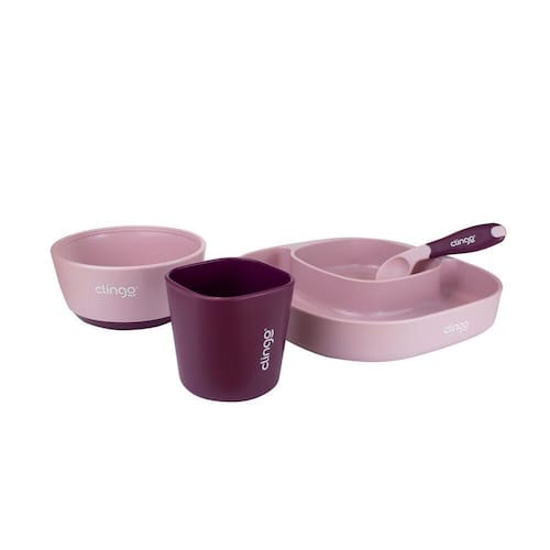 O kit com 4 peças para refeições da Clingo é ideal para a rotina corrida do nosso dia-a-dia! O kit contém 1 copo, 1 prato com divisória, 1 tigela e 1 colher com ponta termossensível. A colher muda de cor se o alimento estiver muito quente. Além disso, o kit incentiva a criança a se alimentar sozinha.