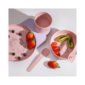 Conteúdo: Kit de Alimentação Infantil com 5 peças: 1 prato, 1 bowl, 1 copo, 1 talher e 1 colher