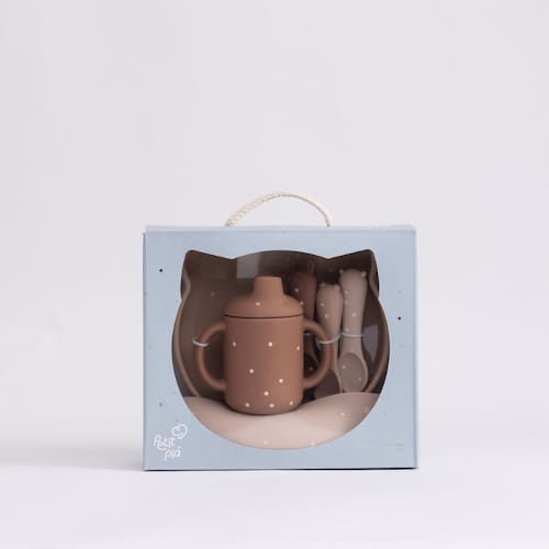 Para os momentos mais preciosos do seu dia, a Petit Piá preparou um presente cheio de amor e cuidado: o Kit Alimentação Infantil em Silicone com 6 peças! Em um tom marrom aconchegante com detalhes que inspiram ternura, este conjunto foi pensado para embalar cada descoberta de sabor do seu pequeno com segurança, praticidade e muito afeto. Imagine a alegria de ver seu bebê explorando as primeiras papinhas com um pratinho que gruda na mesa, um copinho feito para suas mãozinhas, um babador que protege com carinho e colherinhas suaves para cada etapa dessa linda jornada.