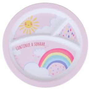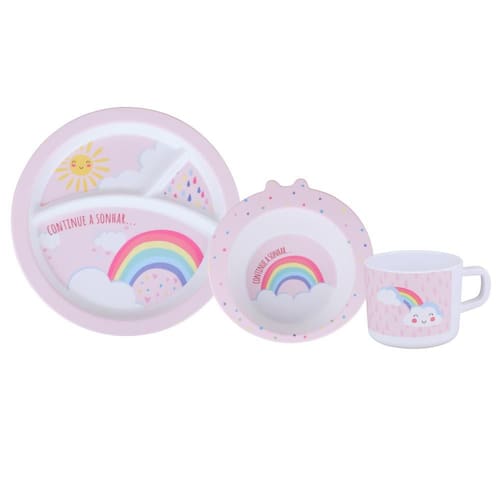 O Kit Alimentação Infantil Arco-Íris Play & Fun é um produto desenvolvido para incentivar a criança a comer sozinho com mais facilidade e muita segurança! O prato raso é acompanhado de prato fundo para sopinhas e uma caneca para suquinho. O objeto é livre de BPA e não pode ser levado ao micro-ondas e freezer.